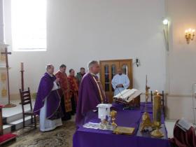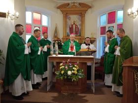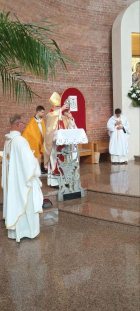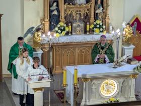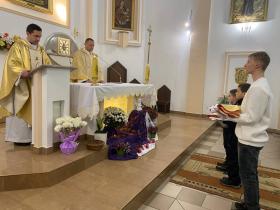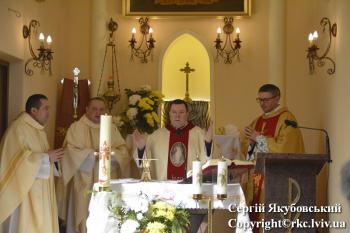 На початок настоятель о. Рафал Зборовський, разом з парафіянами зустріли та привітали Архієпископа Мечислава Мокшицького. Після чого Отець Митрополит Львівський, звершив Євхаристію, у співслужінні з Нотаріусом Митрополичої Курії о. Казимиром Гавлюком, о. Яном Нікелем Деканату Львівського деканату, та місцевими священниками о. Рафалом Зборовським настоятелем парафії та о. Володимиром Данилюком вікарієм.