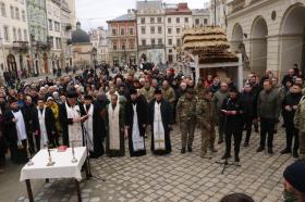 Сьогодні, 24 лютого 2026 року, у четверті роковини російського вторгнення о 9.00 годині у Львові на площі Т.Г. Шевченка відбулася спільна молитва за участі представників різних конфесій та органів місцевої влади за загиблих Героїв, за Україну, за народ, за усіх захисників і захисниць України, за мир і Перемогу. У спільній молитві взяв участь Львівський митрополит Архієпископ Мечислав Мокшицький.