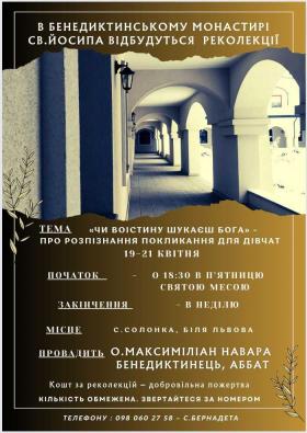Час Великого Посту є нагодою глибше зазирнути у своє нутро, щоб краще дослідити своє серце. У цьому дослідженні важливу роль відіграє Боже слово яке проливає духовне світло і допомагає помітити усі темні місця в нашому серці. Цьогоріч ми розпочали Великий Піст від духовних вправ під час реколекцій які проводить отець Віталій Буковський.