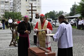 Мармуровий камінь, який взято у базиліці святого Петра у Ватикані і отримав благословення Папи Римського Йоана Павла II, закладено в центрі Запоріжжя під майбутній храм Бога Отця Милосердного.