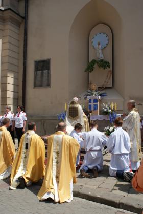 Великодню Літургію в Митрополичій Базиліці у Львові очолив Архієпископ Мечислав Мокшицький. Після завершення Служби Божої духовенство і вірні на чолі з львівським митрополитом процесійно подалися на площу перед катедрою, аби відзначити 5-ту річницю смерті Слуги Божого Йоана Павла ІІ.