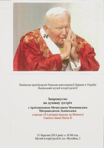 З нагоди четвертої річниці смерті Слуги Божого Святішого Отця Йоана Павла ІІ у парафіяльному костелі св. Варфоломея в місті Дрогобичі 3 квітня відкрито виставку медалей польського гравера Кшиштофа Хвалєби з міста Кросна, які присвячені паломництву Великого Папи до різних місць у Польщі.