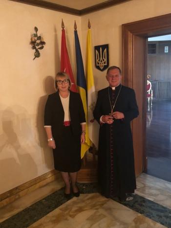 Сестра Лаурета Кобиліньска, Провінційна Настоятелька Сестер Служебниць та с. Юзефа Лейк, Генеральна Вікарія Згромадження приїхали на візитацію чернечих домів Сестер Служебниць в Україні. В Україні Сестри не вперше, але вперше у новій для себе якості, тож поділилися враженнями та розповіли про головну мету свого візиту: