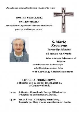 20 січня 2026 року, надійшла сумна звістка про те, що Станіслава Куц (з дому Корнафель), мати сестри Марлени Куц, CSSJ, делегатки Конгрегації Сестер Святого Йосифа в Україні, померла у віці 79 років.