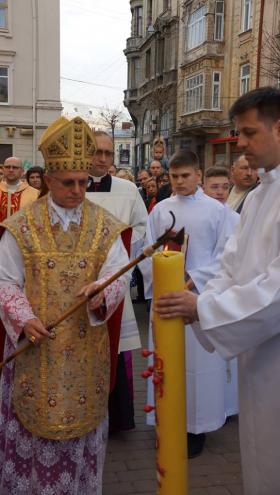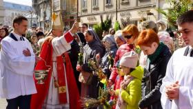 В Квітну неділю перед Урочистою Службою Божою у Львівській Митрополичій Базиліці Успіння Пресвятої Діви Марії Архієпископ-Митрополит Львівський Мечислав Мокшицький посвятив вербові гілки, з якими присутні здійснили обхід катедри.