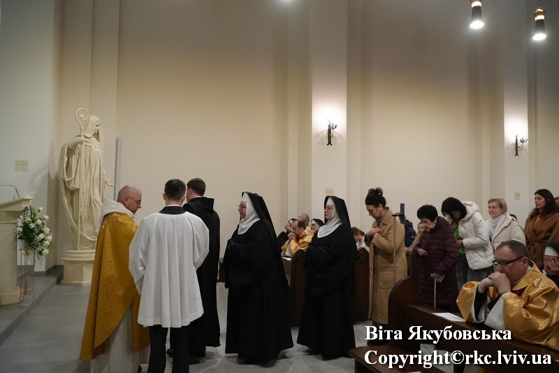 Ze słowami wdzięczności zwróciła się także do obecnych przełożona miejscowej wspólnoty sióstr — s. Bernadeta, która szczególnie podkreśliła rolę ojców Leopolda i Efrema, którzy wraz z siostrami rozpoczynali to wielkie dzieło odnowy obecności benedyktyńskiej, tradycji oraz zasiewania ziaren duchowości benedyktyńskiej na ziemi lwowskiej. Przełożona podziękowała również siostrom ze swojej wspólnoty za wzajemne wsparcie, cierpliwość i wierność, które pozwalają rozkwitać benedyktyńskiej charyzmatowi.