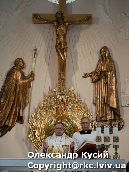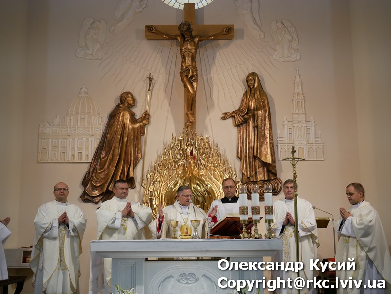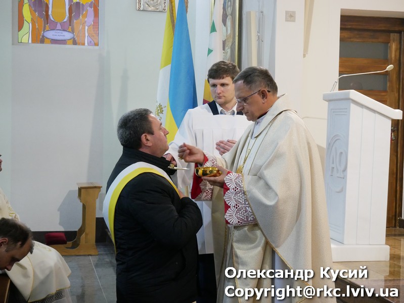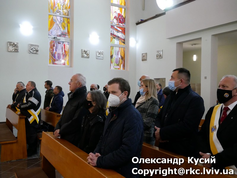Delegacja Rycerzy Kolumba zebrała się w świątyni, aby podziękować Bogu za hojne dary, które otrzymali, a mianowicie za beatyfikację ich założyciela, bł. Michaela McGiwneya. Świętość życia księdza McGiwneya, jego oddana posługa kapłańska i jego wysiłki na rzecz ochrony życia rodzinnego miały głęboki wpływ na Rycerzy Kolumba. Wspólnie dziękowali Bogu za każdego rycerza i każdą radę w Ukrainie, którzy służą we wspólnotach parafialnych.