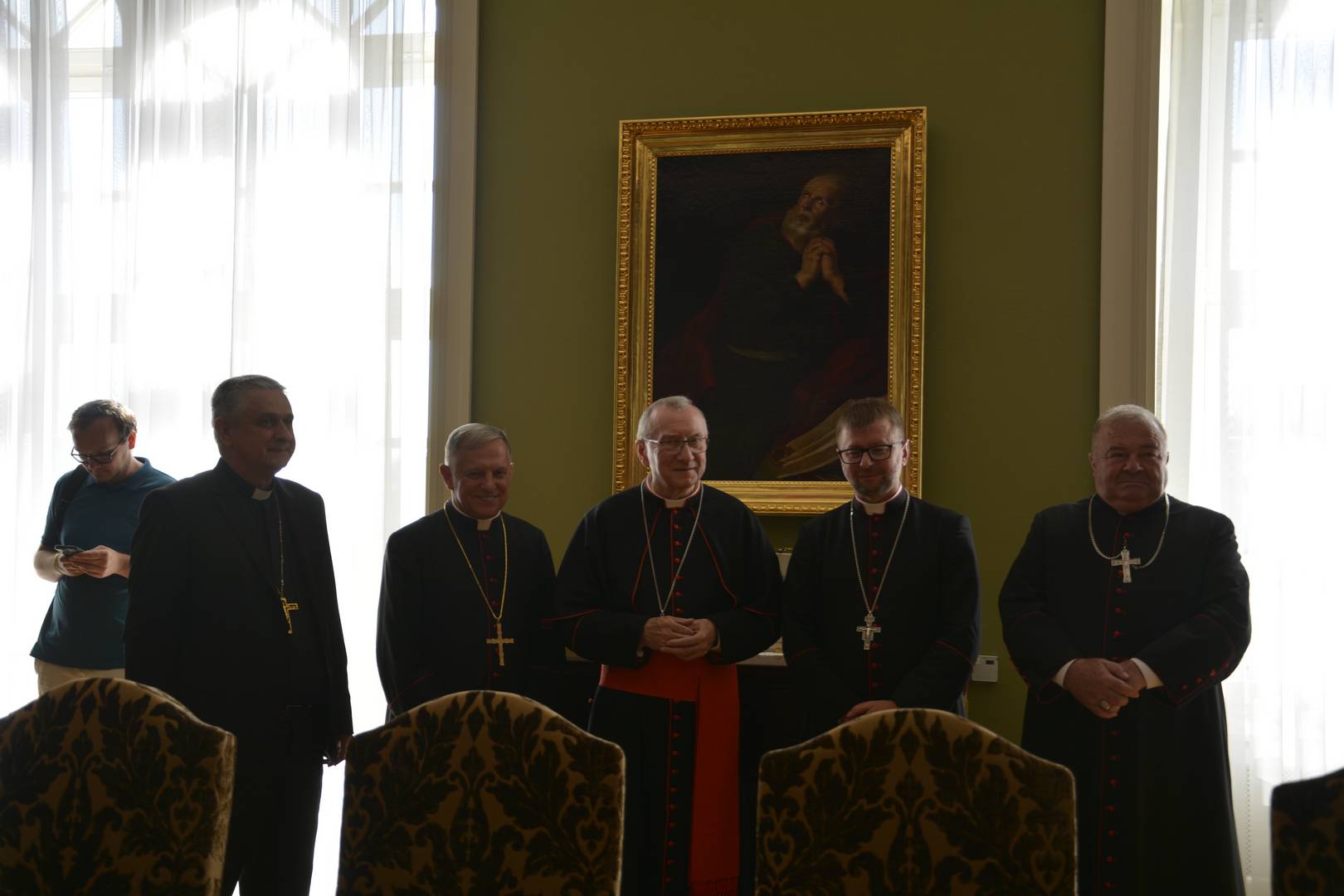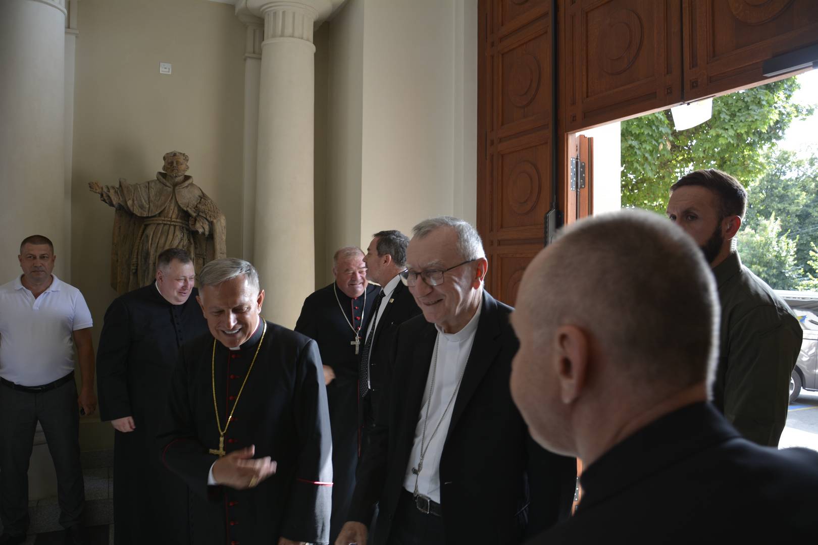 Na spotkanie z watykańskim sekretarzem stanu przybyli również szef lwowskiej administracji obwodowej Maksym Kozycki oraz mer Lwowa Andrij Sadowyj. W kaplicy kurii odbyło się nabożeństwo modlitewne, na zakończenie którego kardynał udzielił błogosławieństwa wszystkim obecnym.