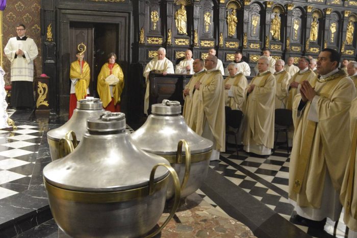 Po Liturgii Słowa kapłani, zgodnie z tradycją, odnowili przyrzeczenia złożone biskupowi podczas święceń kapłańskich. Obrzęd ten przypomina kapłanom o ich jedności w Chrystusie; i ten dzień jest świętem ich powołania i szczególnej misji.