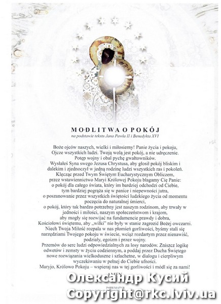 Od 1 kwietnia, Uroczystości MB Łaskawej, w bazylice metropolitalnej we Lwowie będziemy mogli adorować Najświętszy Sakrament w monstrancji „Królowa Pokoju”. Adoracja w kaplicy złotej jest codziennie od 11.00 do 17.30.