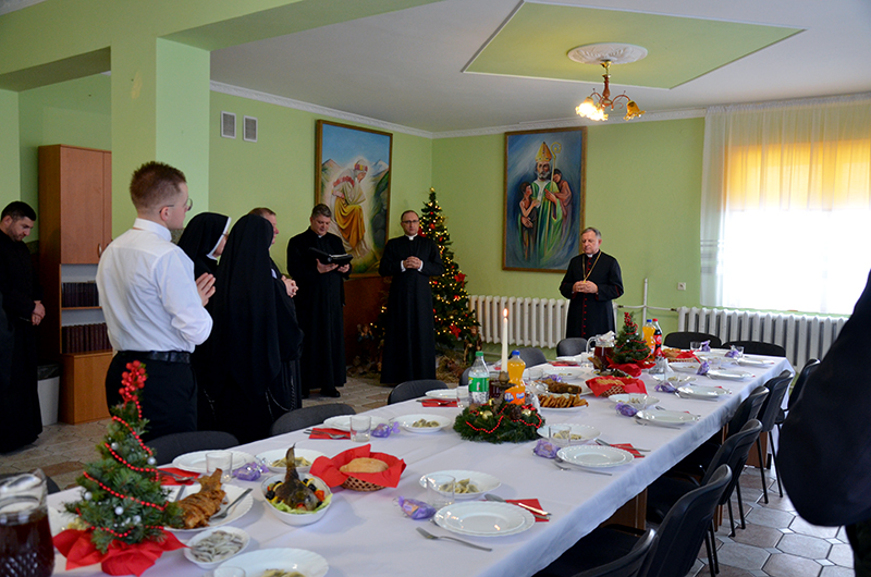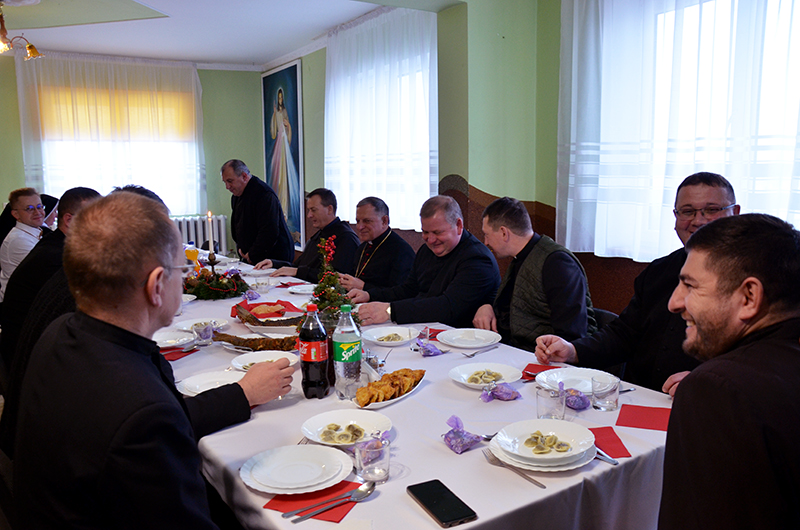 Po Mszy św. kapłani i siostry zakonne posługujące w dekanacie wysłuchali konferencji ks. Arcybiskupa dotyczącej rozpoczynającego się w krótce w Kościele Roku Jubileuszowego. Tę część spotkania zakończyły ogłoszenie i informacje, które przedstawił kanclerz Kurii, ks. Władysław Grymski. Ostatnią częścią tegorocznego spotkania opłatkowego był wspólny posiłek, który poprzedziło odczytanie fragmentu Ewangelii, modlitwa, dzielenie się opłatkiem oraz wzajemne życzenia.