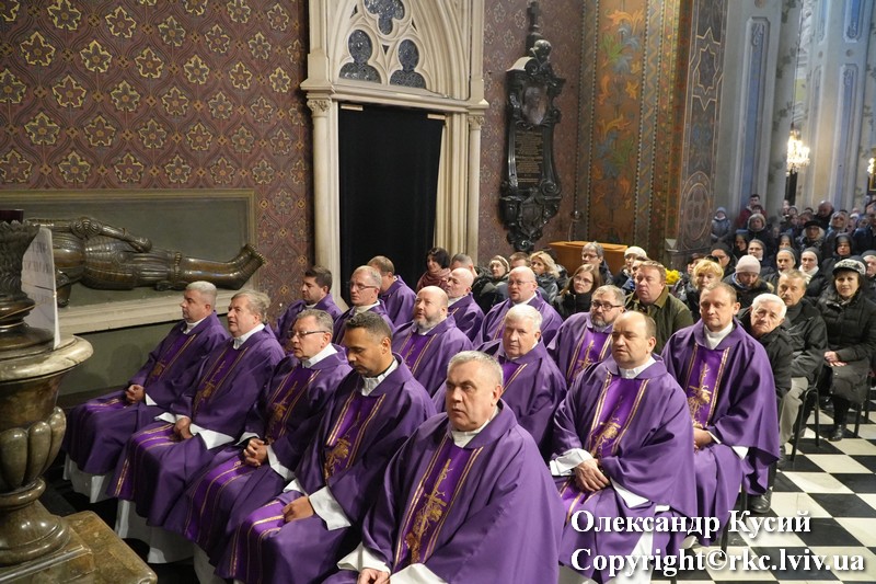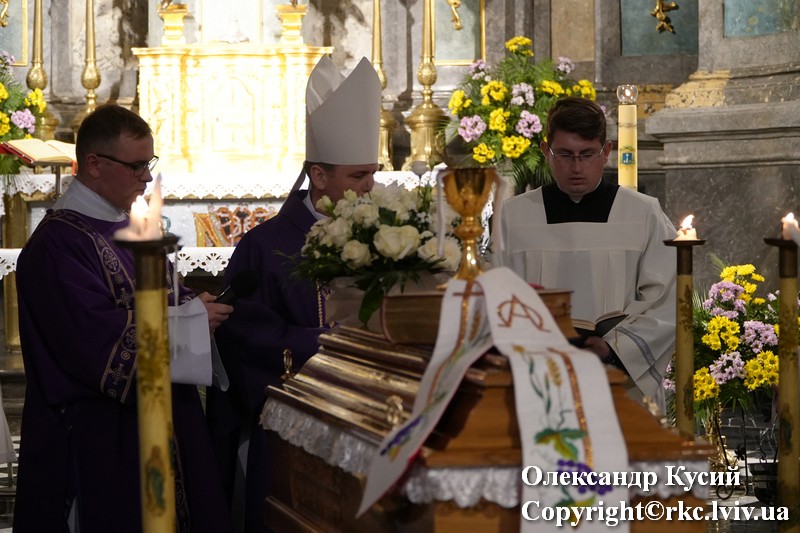 Mszy Świętej przewodniczył abp Meczysław Mokrzycki Metropolita Lwowski w koncelebrze z biskupem diecezji Charkowsko-Zaporoskiej Pawłem Honczarukiem, biskupami pomocniczymi archidiecezji Lwowskiej Leonem Małym i Edwardem Kawą, emerytowanym biskupem Marianem Buczkiem oraz licznie zgromadzonymi kapłanami.