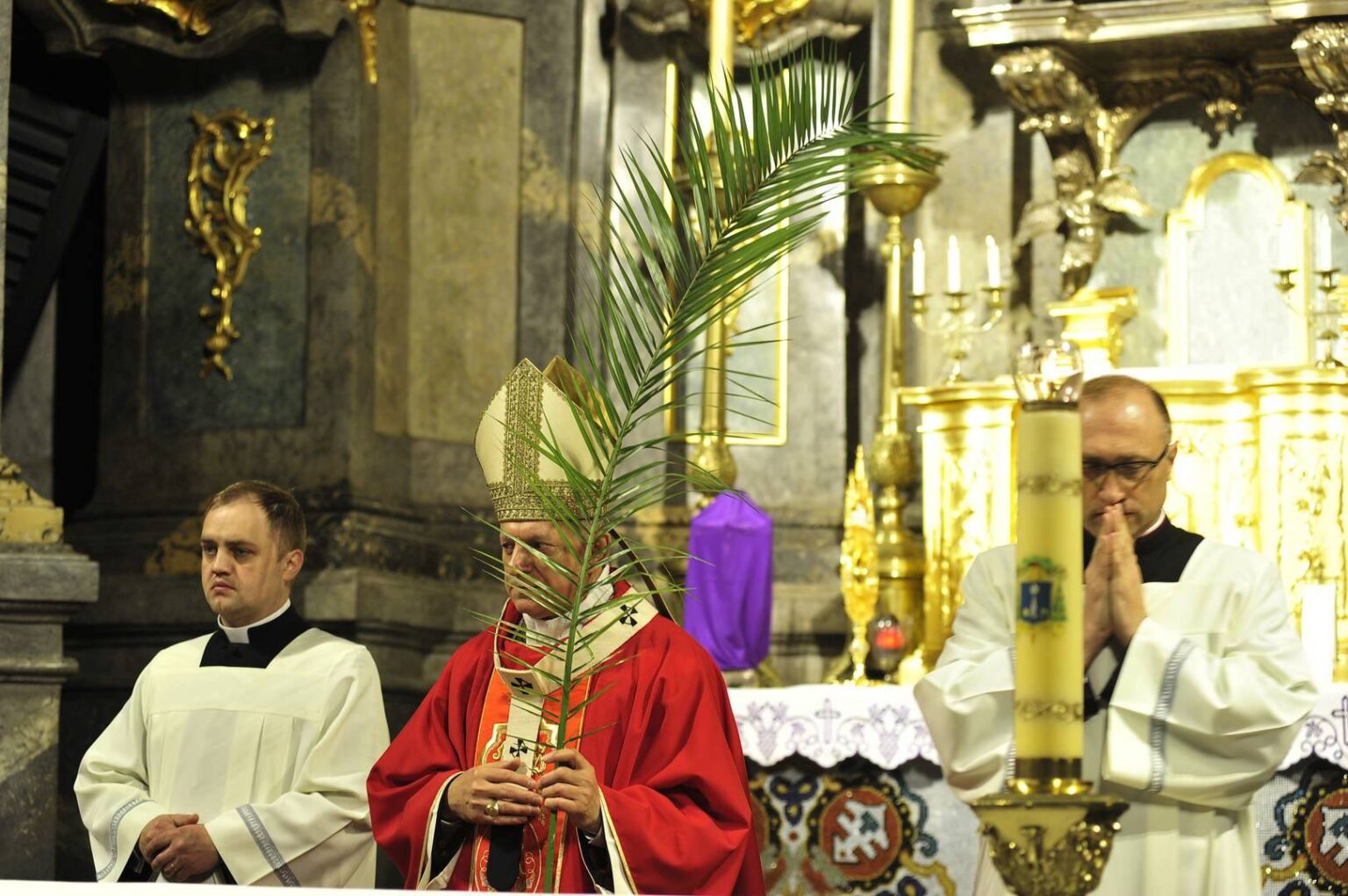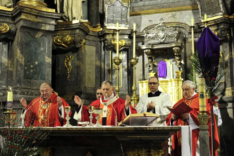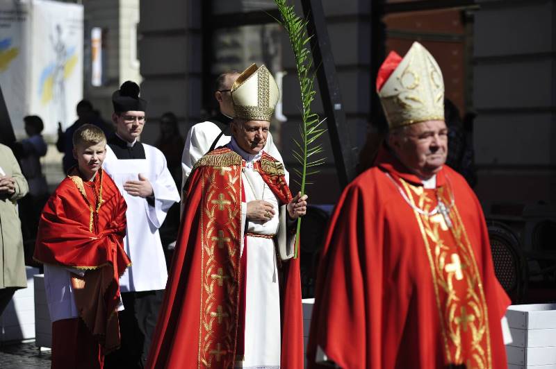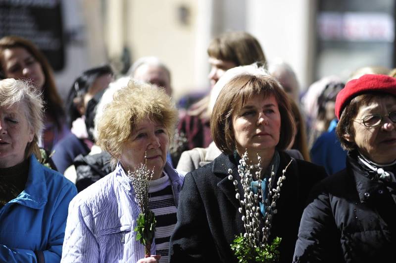 Tradycyjnie poświęcenie gałązek palmowych odbywało się przed kościołem, przy tablicy pamiątkowej poświęconej świętemu Janowi Pawłowi II. Uroczystą procesję, symbolizującą triumfalny wjazd Jezusa do Jerozolimy, oraz Mszę Świętą z Ewangelią Męki Pańskiej odprawił arcybiskup metropolita lwowski Mieczysław Mokrzycki w koncelebrze z biskupem seniorem Marianem Buczkiem.