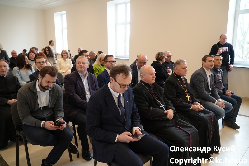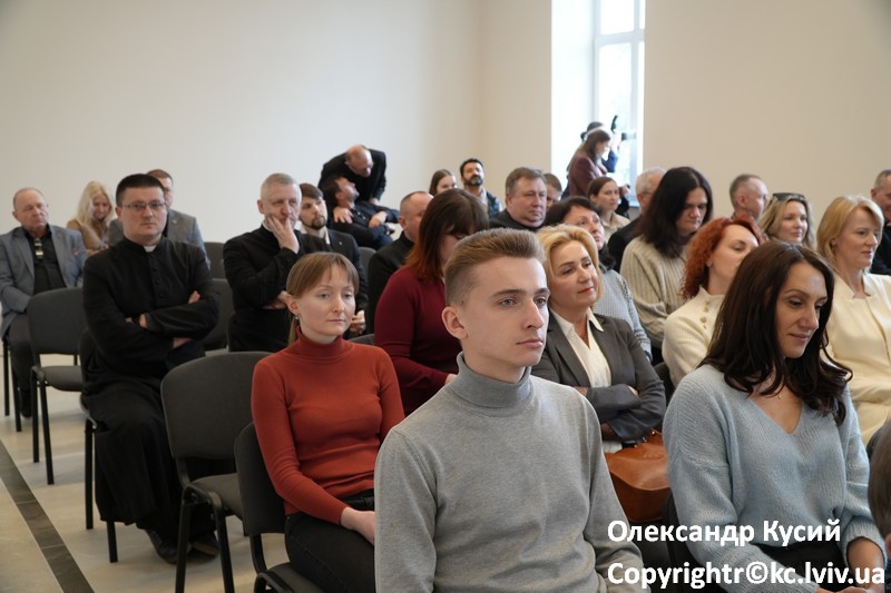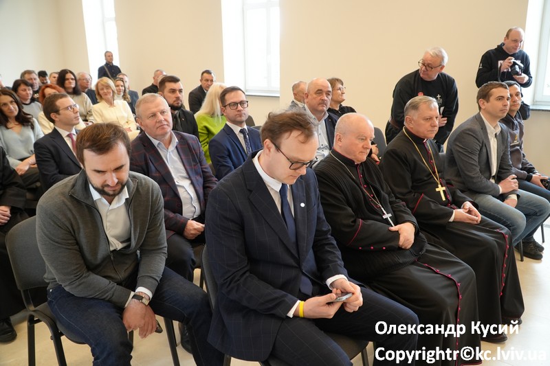 Po wspólnej modlitwie i poświęceniu pomieszczeń rozpoczęła się część oficjalna: pokaz filmu o pracy psychologów i wolontariuszy Centrum, którzy od pierwszych dni pełnoskalowej inwazji pomagali przesiedleńcom, a także o innych obszarach działalności – szkoleniach w ramach szkoły kapelańskiej, treningach psychologicznych dla duchowieństwa i świeckich.