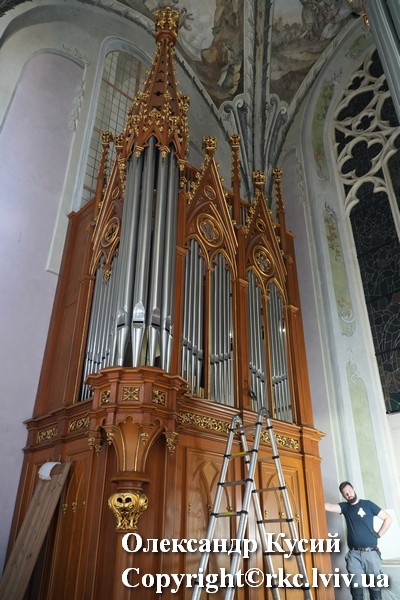 Instrument ten w trzech etapach uzyskał swoje ostateczne i znane dla wielu pokoleń lwowian brzmienie. „Urodzony” w latach 30. w warsztacie Romana Ducheńskiego, 50 lat później został częściowo zrekonstruowany w warsztacie Ignacego Żebrowskiego, a w 1899 roku pracował nad nim warsztat Jana Śliwińskiego, który w tym czasie i do 1903 roku był największą i najbardziej znaną instytucją tworzenia i naprawy organów w Galicji.