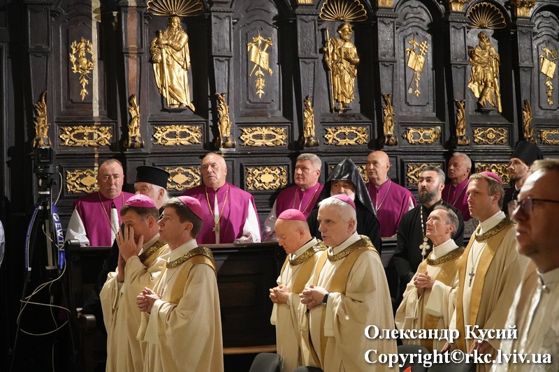 Uroczystej Mszy Świętej przewodniczył legat papieski kardynał Crescenzio Sepe, a koncelebrowali: arcybiskup Tadeusz Wojda, przewodniczący Konferencji Episkopatu Polski, biskup Witalij Skomorowski, przewodniczący Konferencji Episkopatu Ukrainy, biskup Edцard Kawa, ordynariusz diecezji kamieniecko-podolskiej, biskup Paweł Honczaruk, ordynariusz diecezji charkowsko-zaporoskiej, biskup Witalij Krzywycki, ordynariusz diecezji kijowsko-żytomierskiej, biskup pomocniczy diecezji kijowsko-żytomierskiej Oleksandr Jazłowiecki, biskup pomocniczy diecezji charkowsko-zaporoskiej Jan Sobiło, ordynariusz archidiecezji lwowskiej arcybiskup Mieczysław Mokrzycki, biskup pomocniczy archidiecezji lwowskiej Leon Mały i biskup Emerytowany Marian Buczek.