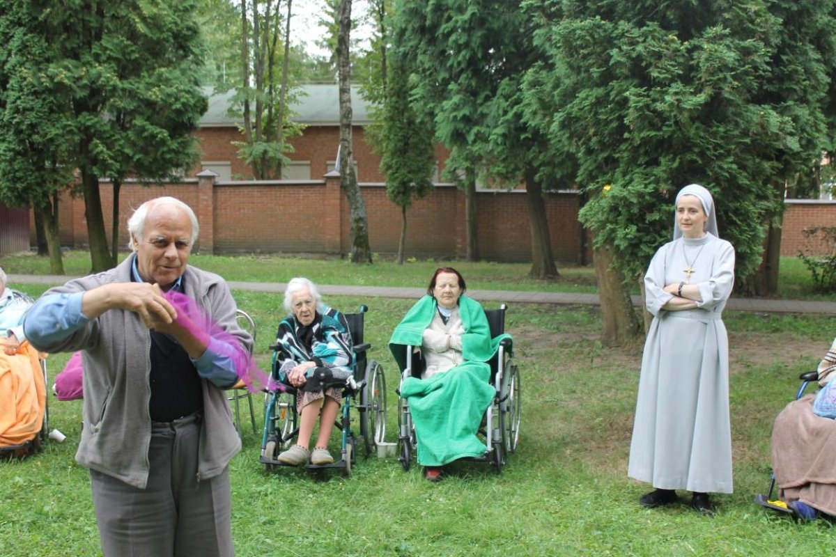 Потребуючі люди могли ті кілька днів тішитися спільнотою, переживати спільні молитовні та відпочинкові зустрічі на свіжому повітрі, бо погоду Бог нам дав чудову. Ми разом співали пісні, читали вірші, а п. Антоній Млодніцкий дивував нас своїми ілюзіоністичними фокусами. Особливою розвагою був для нас виступ п. Едварда Сосульського, котрий захопив нас своїм співом львівських пісень разом з п. Мирославом Остюк, котрий чудово грав на акордеоні. Їхній виступ надовго запав у серця наших підопічних, котрі мали можливість повернутися думками до часів своєї юності. Ми хочемо також щиро подякувати волонтеркам зі «світлиці» Яринці, Наталці та Іванці, з нашого дому сестер по вул. Татарбунарській, котрі прикрасили веселі вечори своїми танцями і забавою, а також хору з парафії Божого Милосердя з Рясного, на чолі з п. Маряною Ометюх, котрі своїм співом прикрасили Святу Месу в урочистість Внебовзяття ПДМ.