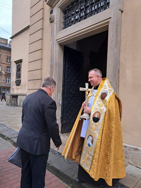 W przemówieniu do wiernych powiedział: „Przyjechałem na Ukrainę z wizytą solidarności i wsparcia. Przykład Ukrainy uświadamia światu, że wolność zdobywamy. Musimy być gotowi do poświęceń za wolność i być wdzięczni tym, którzy płacą za nią wysoką cenę... Mówię wam dzisiaj, jak Chrystus do swoich uczniów - Błogosławieni jesteście, bo daliście pić spragnionym i daliście im pożywienie, przyjęli do swoich domów wielu uchodźców”.
