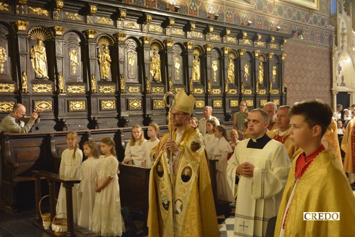 – Fakty historyczne mówią nam, że Maryja rzeczywiście działa. To właśnie w tej katedrze w tym roku postanowiono poświęcić Ukrainę i Rosję Niepokalanemu Sercu Maryi, co miało miejsce 25 marca we wszystkich kościołach i sanktuariach maryjnych. A po 25 marca siły przestępcze federacji rosyjskiej wycofały się z Kijowa. Nie powiedzą tego w wiadomościach, ale to poświęcenie pokazało swoją moc. Maryja ogłosiła chwałę Boga. (…) Gromadzimy się więc tutaj, w tym miejscu, aby jeszcze głębiej doświadczyć wstawiennictwa Maryi, którego tak bardzo potrzebujemy. (…) Dzisiaj Bóg zachęca nas, abyśmy dzień po dniu kierowali nasze kroki w górę, ku Niebu, jak Maryja. Prosimy więc o wytrwałość, abyśmy byli wierni Bogu w małych rzeczach, abyśmy żyli po chrześcijańsku nawet w naszych najdrobniejszych uczynkach, abyśmy byli ludźmi wiary jak Maryja, – powiedział.
