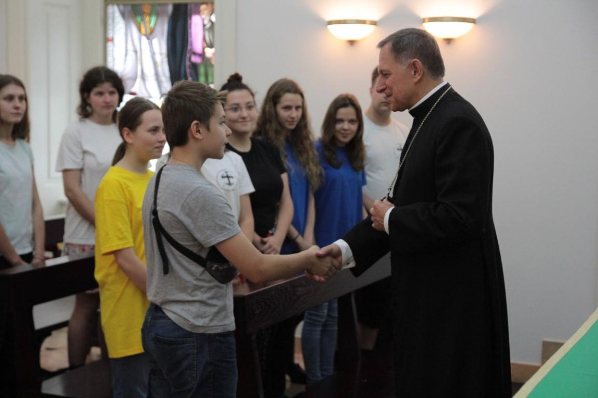 Arcybiskup spotkał się z pielgrzymami w kaplicy Kurii na modlitwę i krótką rozmowę.