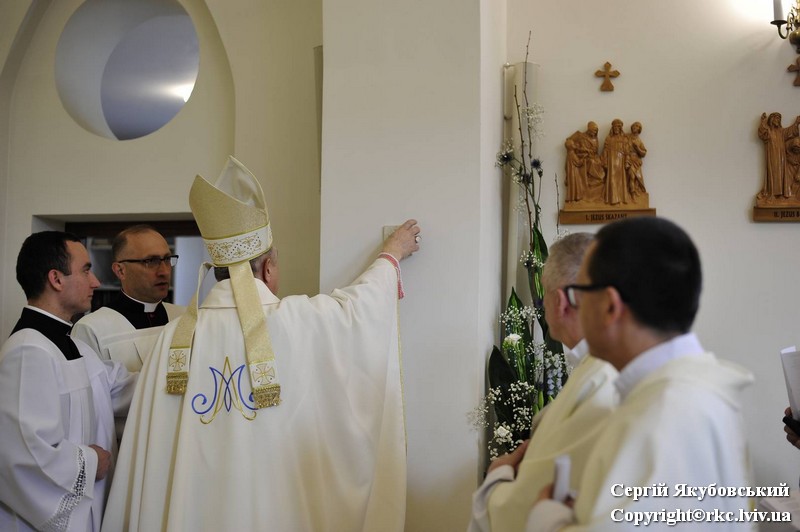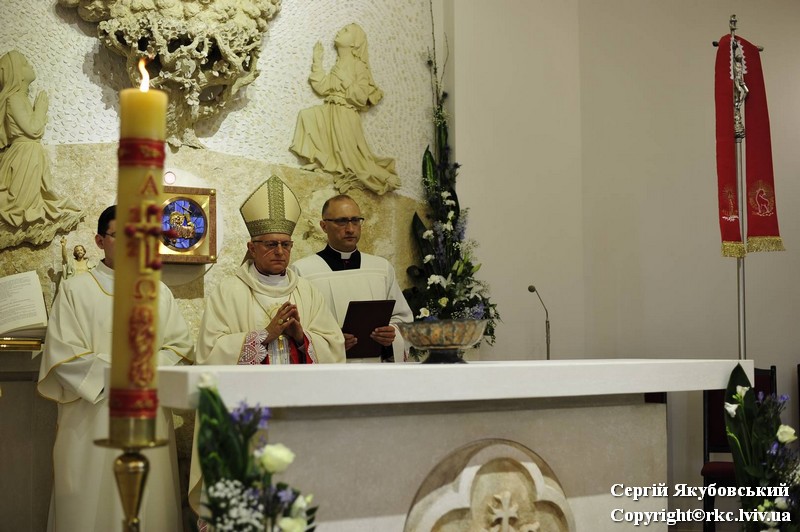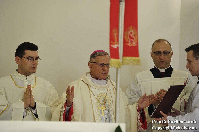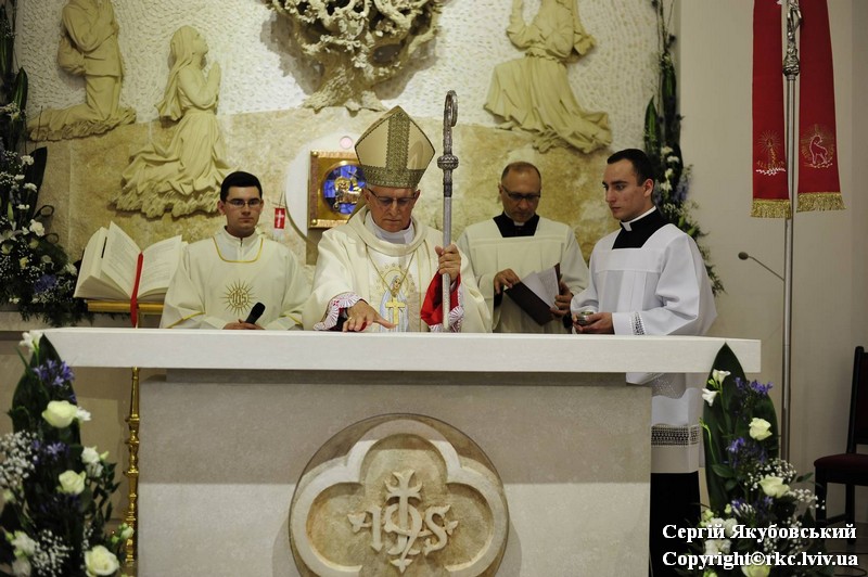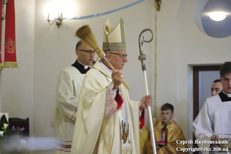 Inauguracyjnej Mszy Świętej przewodniczył arcybiskup Mieczysław Mokrzycki, metropolita lwowski, w koncelebrze ze swoimi biskupami pomocniczymi — Leonem Małym i Edwardem Kawą, a także licznymi przybyłymi kapłanami. Biskupi dokonali również dedykacji (poświęcenia) świątyni, dopełniając jej konsekracji. Poświęcili stały ołtarz i włożyli w niego relikwie patrona archidiecezji lwowskiej — bł. Jakuba Strzemię.