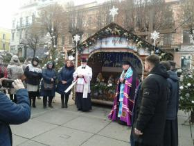 На Центральній площі Чернівців традиційно, вже сьомий рік поспіль, відкрили та освятили різдвяний вертеп.