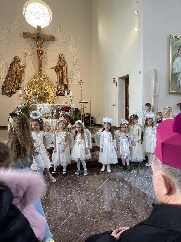 Ks. Arcybiskup w kazaniu zwracał uwagę na Słowo Boże, które formuje wiarę. Rodziny Parafii tego dobrze doświadczają. Po jasełkach Arcybiskup błogosławił mamy oczekujące Narodzenia potomstwa i wszystkie dzieci. Dzieci otrzymały świąteczne prezenty od Arcybiskupa. Przedłużeniem świętowania była agapa w Domu św. Jana Pawła II.