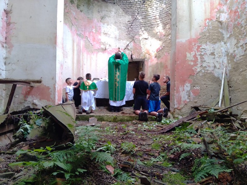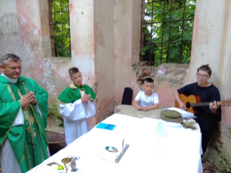 Trudno było znaleźć otoczony drzewami wyższymi niż wieża kościół Najświętszej Maryi Panny w Kuhajowie. Zrujnowany dach, poręcze z chóru porozrzucane po podłodze. Na stosunkowo dobrze zachowanym ołtarzu (są nawet elementy drewnianej nastawy ołtarzowej) pierwszy raz od 76 lat odprawiono Mszę św.