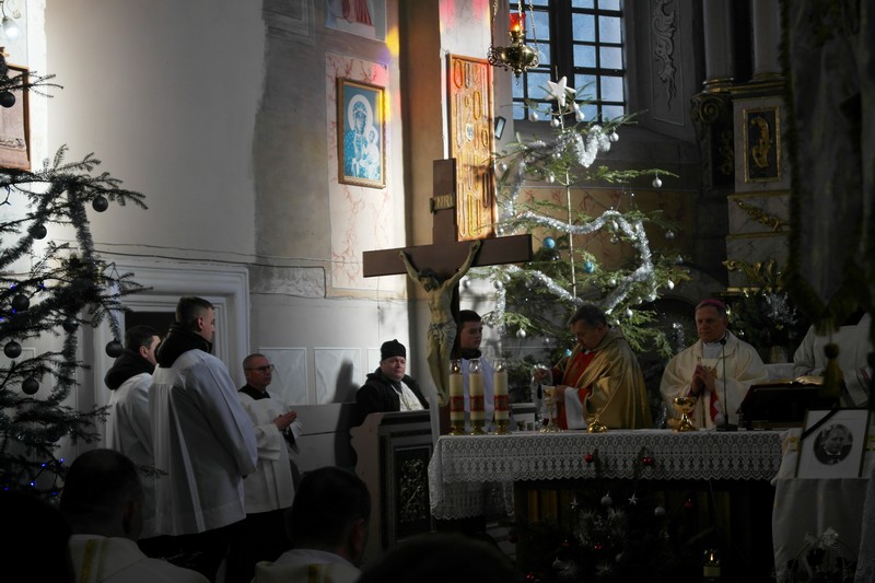 W homilii ks. arcybiskup przypomniał życie i posługę duszpasterską śp. o. Romana. Podkreślił, że zmarły przed rokiem proboszcz starał się rozpalić entuzjazm wiary swoich parafian, podejmując wiele inicjatyw modlitewnych i duszpasterskich oraz czynił zabiegi zmierzające do odbudowania tak bardzo zniszczonego przez „historię” kościoła i klasztoru, w którym posługiwał. Po Mszy św. ks. arcybiskup poświęcił tablicę upamiętniającą życie i posługę duszpasterską śp. o. Romana.