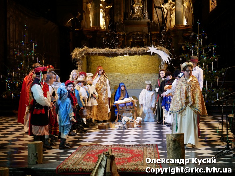 Inscenizacja Jasełek według Wandy Chotomskiej w katedrze lwowskiej.