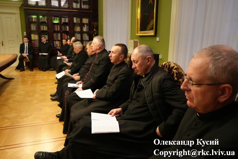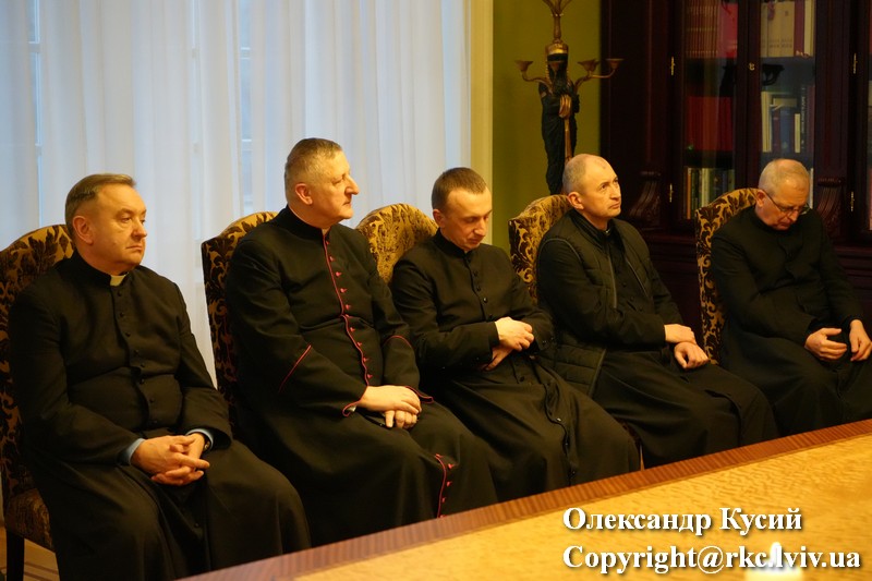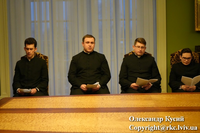 Wspólną modlitwę w kaplicy poprowadził arcybiskup Mieczysław Mokrzycki. Następnie wszyscy udali się do biblioteki, gdzie metropolita przemawiał do przyszłych księży. On zaznaczył, że ten rok w Kościele rzymskokatolickim w Ukrainie jest poświęcony miłosierdziu Bożemu.