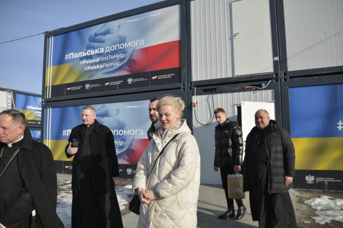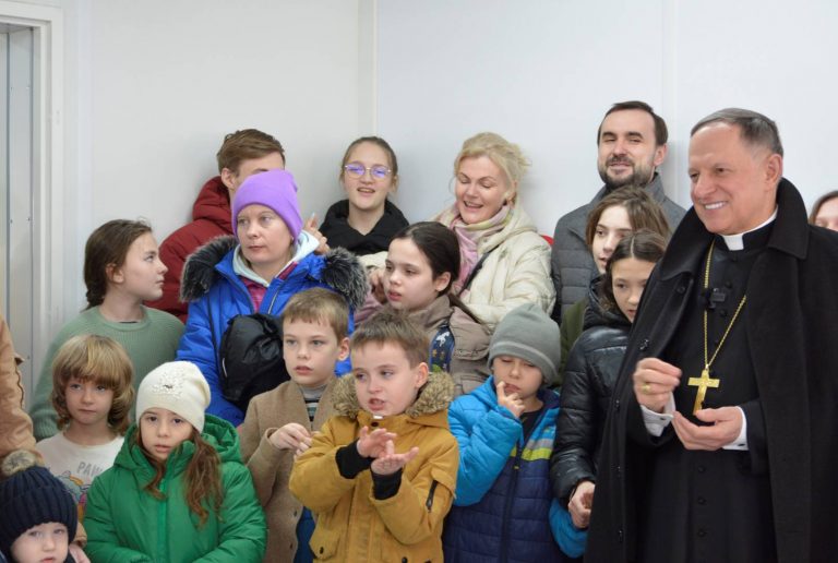Arcybiskup przybył wraz z klerykami V roku Wyższego Seminarium Duchownego św. Józef, którzy urządzili święto dla dzieci, wspólnie śpiewali i tańczyli , a metropolita wraz z przedstawicielami władz miasta i wydziału pomocy społecznej zapoznawał się z warunkami życia i potrzebami mieszkańców. Następnie arcybiskup Mieczysław dołączył do dzieci i seminarzystów, nauczył się z nimi nowej piosenki i odmówił z dziećmi „Ojcze nasz” o pokój w Ukrainie. A na pożegnanie rozdawał słodkie poczęstunki, metropolita również otrzymał upominek od mieszkańców. Na spotkaniu była obecna żona mera Lwowa, pani Kateryna Kit-Sadowa jest częstym gościem w miasteczku. Zna prawie wszystkich po imieniu i pamięta, kto skąd ewakuował. W Boże Narodzenie pomagała organizować żłobek dla dzieci, a teraz planuje kiermasz prac twórczych z kobietami. Pani Kateryna entuzjastycznie włączyła się do śpiewu i tańca dzieci, bo jak sama mówi: „Radość ze spotkania to nie krótkotrwałe wzruszenie, to szczęście!”