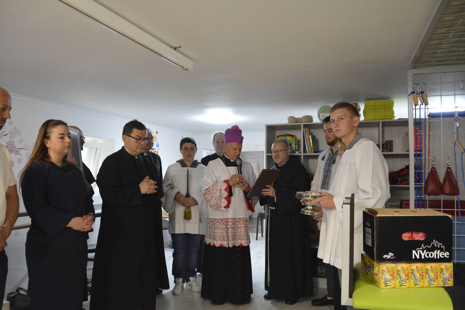 Miejscowy proboszcz ks. Jacek Waligóra podziękował Metropolicie za przybycie i wszystkim, którzy uczynili tę salę użyteczną przestrzenią dla dzieci z mózgowym porażeniem dziecięcym. Proboszcz złożył szczególne podziękowania Fundacji im. Jana Olszewskiego „Pomoc Polakom na Wschodzie”, która sfinansowała powstanie gabinetu, oraz Caritas Polska, dzięki którego wsparciu dzieci otrzymają bezpłatną pomoc fizjoterapeuty i masażysty.
