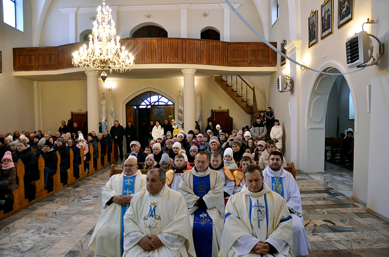 Spotkanie opłatkowe duchowieństwa dekanatu Sambor z ks. Arcybiskupem Mieczysławem Mokrzyckim.