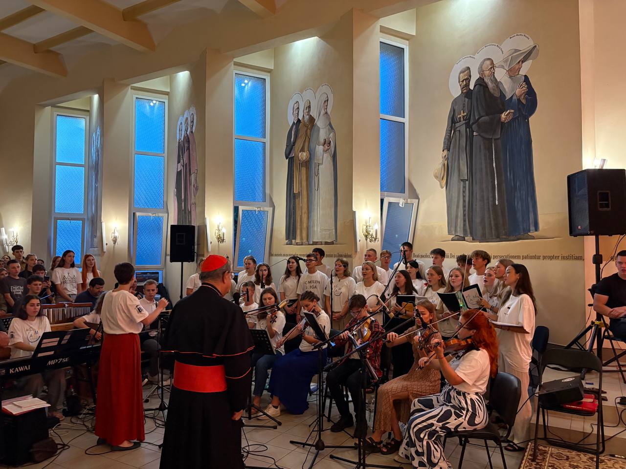 Następnie po kolacji było się spotkanie z gościem Watykanu, legatem papieskim kardynałem Sepe. Podczas adoracji młodzież wspólnie modliła się o świętość i jedność swoich rodzin oraz prosiła Boga o dar pokoju dla Ukrainy, ochronę i błogosławieństwo dla naszych obrońców.
