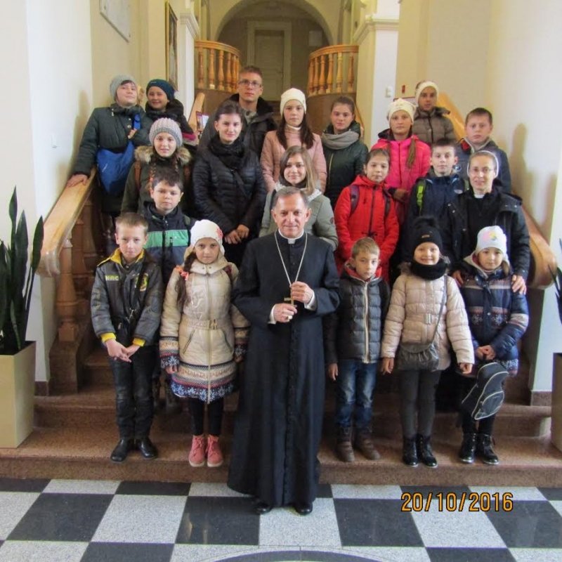 Kulminacyjnym punktem naszego pobytu w Kurii było spotkanie z Księdzem Arcybiskupem Mieczysławem Mokrzyckim. Było wspólne przywitanie się, krótka luźna rozmowa Księdza Arcybiskupa z dziećmi , błogosławieństwo i indywidualne pożegnanie się.