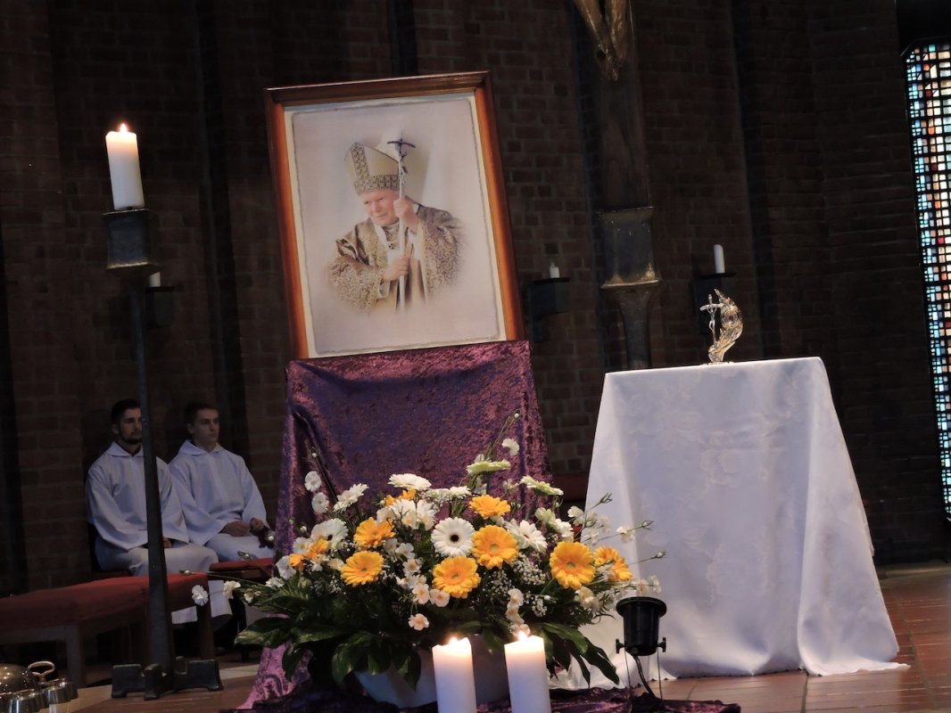 W tym miejscu wyrażamy słowa podziękowania kapłanom, siostrom zakonnym i wszystkim wiernym za wspólne dziękczynienie Bogu za dar św. Jana Pawła II. A relikwiarz niech towarzyszy w drodze do świętości na miarę św. Jana Pawła II.