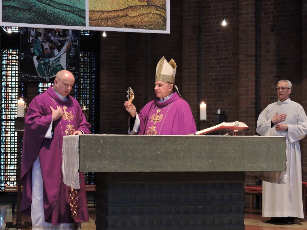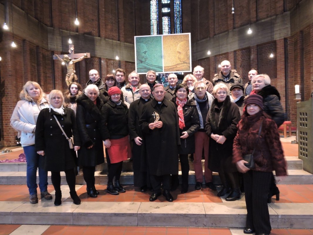 Podczas pierwszej Mszy św. odczytał akt przekazania relikwii, po czym ks. Sławomir Nadobny SChr, proboszcz Polskiej Misji Katolickiej w Wuppertalu, przyjął je w swoje dłonie w postawie wdzięczności za ten piękny dar ofiarowany wiernym gromadzącym się w kościołach: St. Antonius (Wuppertal), St. Michael (Solingen) oraz Mariendom (Neviges) na nabożeństwach w języku polskim.