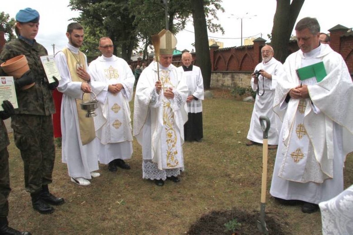 Abp Mieczysław Mokrzycki, Agata Wojtyszek - wojewoda świętokrzyski i księża salezjanie zasadzili przy kościele trzy dęby dla uczczenia 100. rocznicy obecności salezjanów w Kielcach, 100-lecia odzyskania niepodległości i 40. rocznicy wyboru kardynała Karola Wojtyły na papieża.