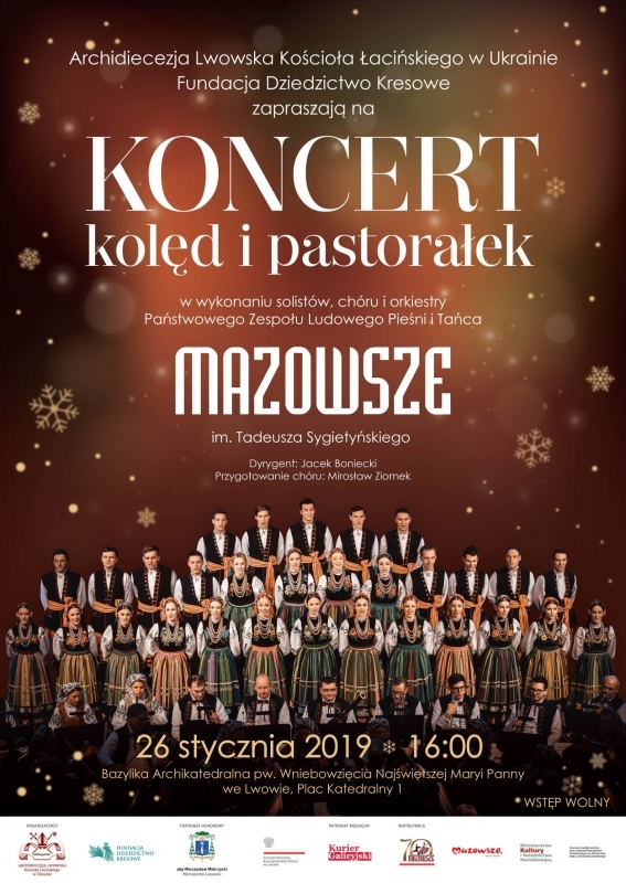 Soliści, chór i orkiestra Państwowego Zespołu Ludowego Pieśni i Tańca Mazowsze im. Tadeusza Sygietyńskiego wystąpią w łacińskiej katedrze Wniebowzięcia Najświętszej Maryi Panny we Lwowie (Plac Katedralny, 1). Wejście jest bezpłatne.