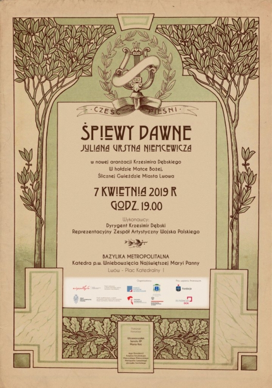 Koncert nosi tytuł "Śpiewy Dawne Juliana Ursyna Niemcewicza" w hołdzie Matce Bożej Ślicznej Gwieździe Miasta Lwowa. Serdecznie zapraszamy.