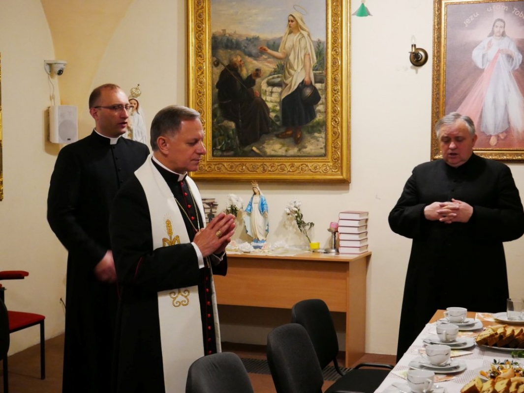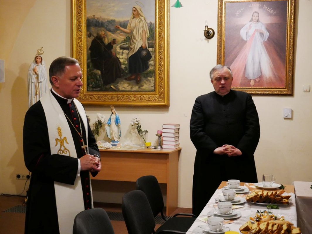 Świąteczne spotkanie wzbogacił śpiew pieśni wielkanocnych i słodki prezent, który Metropolita Lwowski przekazał wszystkim na koniec.