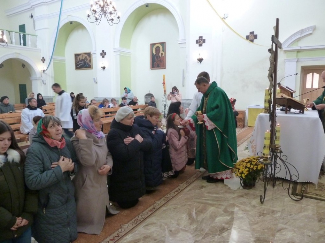 O godz. 9.45 proboszcz parafii ksiądz Andrzej Migrała wraz z parafianami uroczyście powitali Arcybiskupa Mieczysława Mokrzyckiego Metropolity Lwowskiego. Po uroczystym powitaniu, o godz. 1000, została odprawiona Msza Święta, a po Mszy Świętej pasterskie błogosławieństwo zebranych dzieci i młodzieży. Po błogosławieństwie odbyło się spotkanie z parafianami, w czasie której wierni przedstawili biskupowi swoje problemy oraz podzielili się swoimi osiągnięciami.