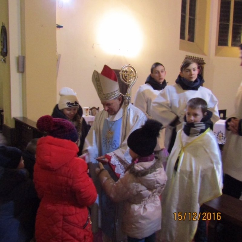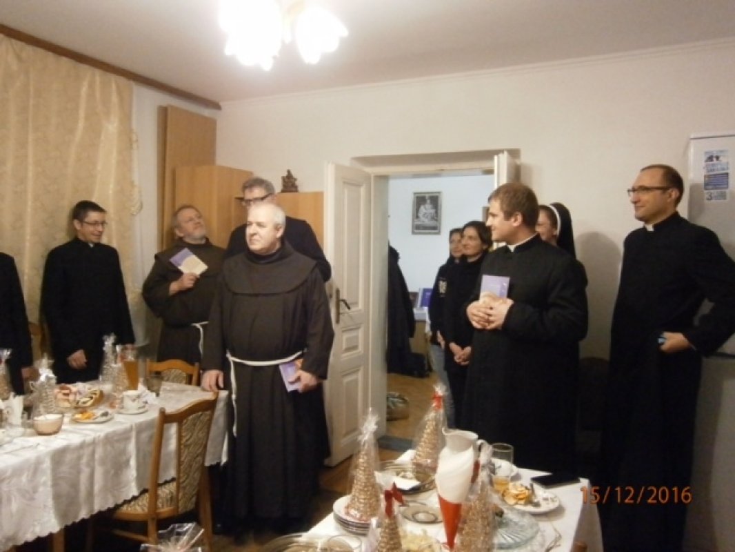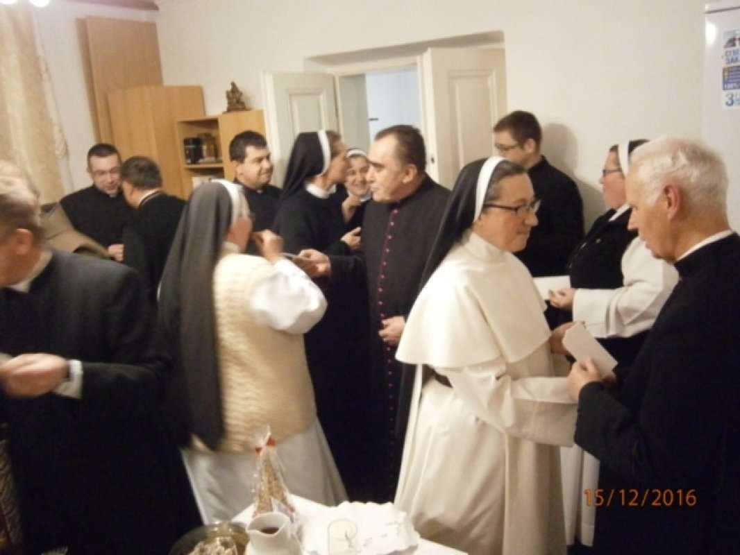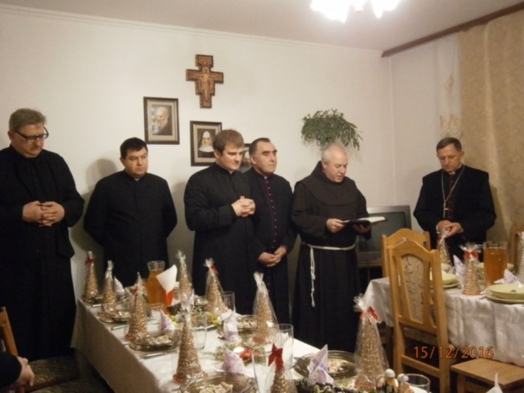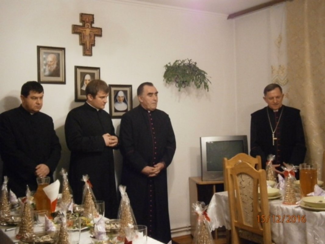 Byli obecni ks. Infułat Józef Pawliczek i ks. sekretarz Andrzej Legowicz, także siostry zakonne z dekanatu, dzieci i kamieneccy parafianie. Po Mszy Świętej księża i siostry udali się do domu zakonnego Sióstr Serafitek na konferencję. Ważnym punktem programu była wspólna wieczerza wigilijna. Padło wiele ciepłych życzeń podczas wspólnego dzielenia się opłatkiem i w tak radosnym nastroju przeżywaliśmy spotkanie spożywając dania wigilijne.