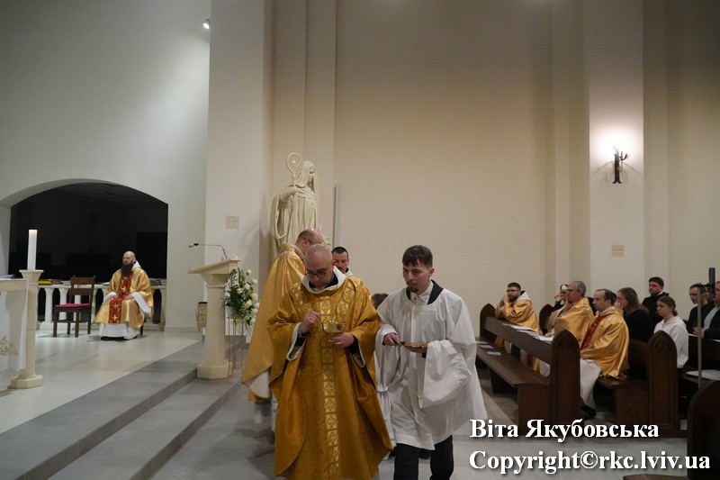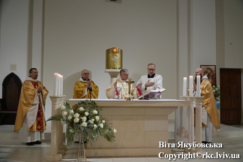 Dziękczynną Mszę Świętą za pięć lat obecności i posługi wspólnoty benedyktyńskiej w archidiecezji Lwowskiej celebrował arcybiskup Mieczysław Mokrzycki, metropolita Lwowski. Wraz z nim koncelebrowali przełożony benedyktyńskiej kongregacji Zwiastowania Najświętszej Maryi Panny o. Maksymilian Nawara, a także pierwsi wyświęceni w tej świątyni ojcowie benedyktyni — o. Efrem Michalski, obecnie opat opactwa benedyktyńskiego w Lubiniu (Polska), oraz przeor miejscowej wspólnoty benedyktyńskiej o. Leopold Rudziński.