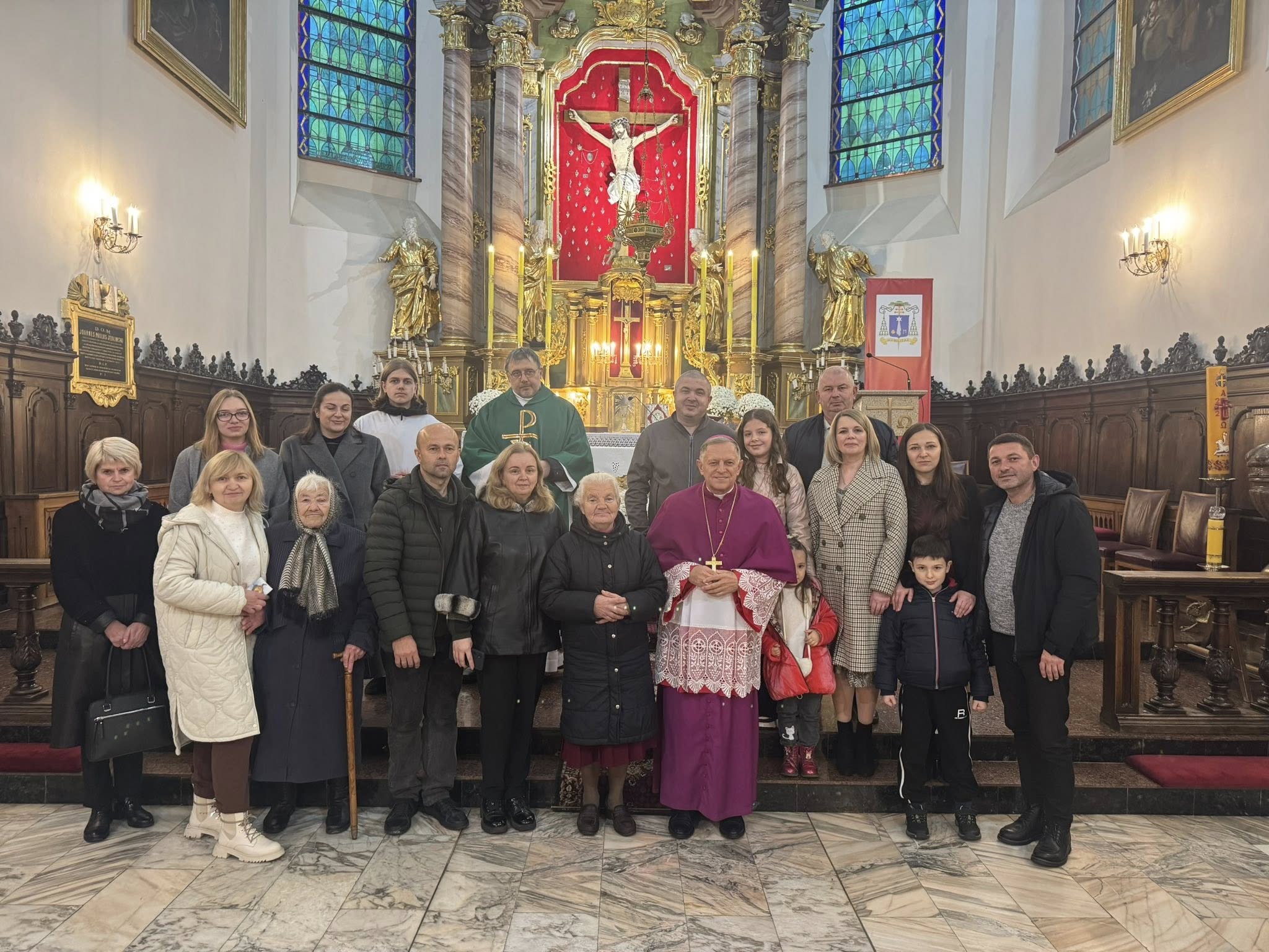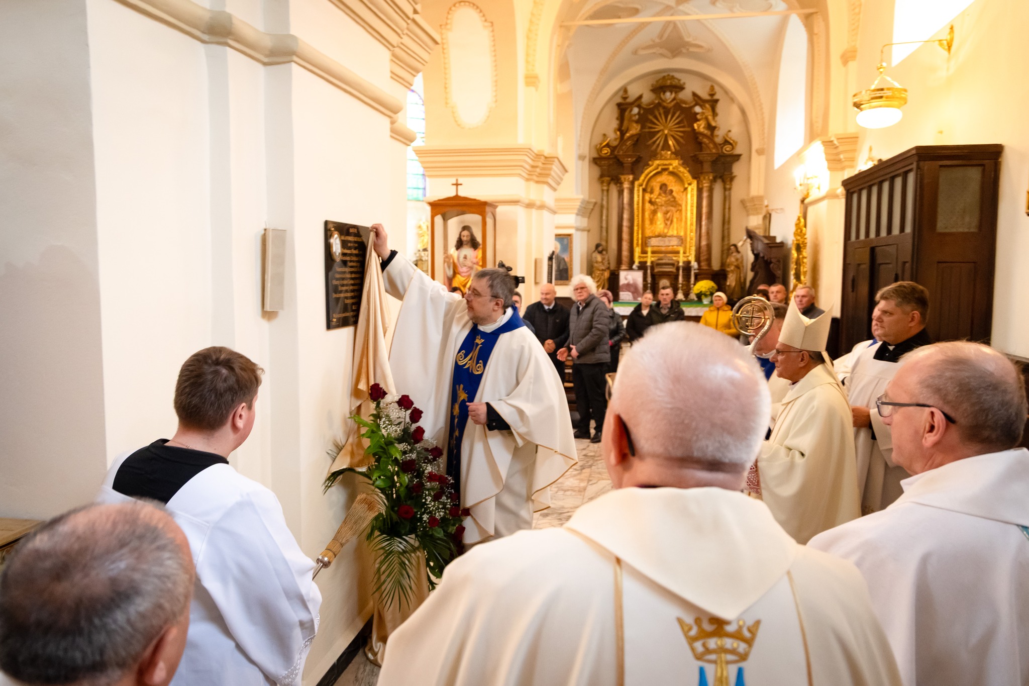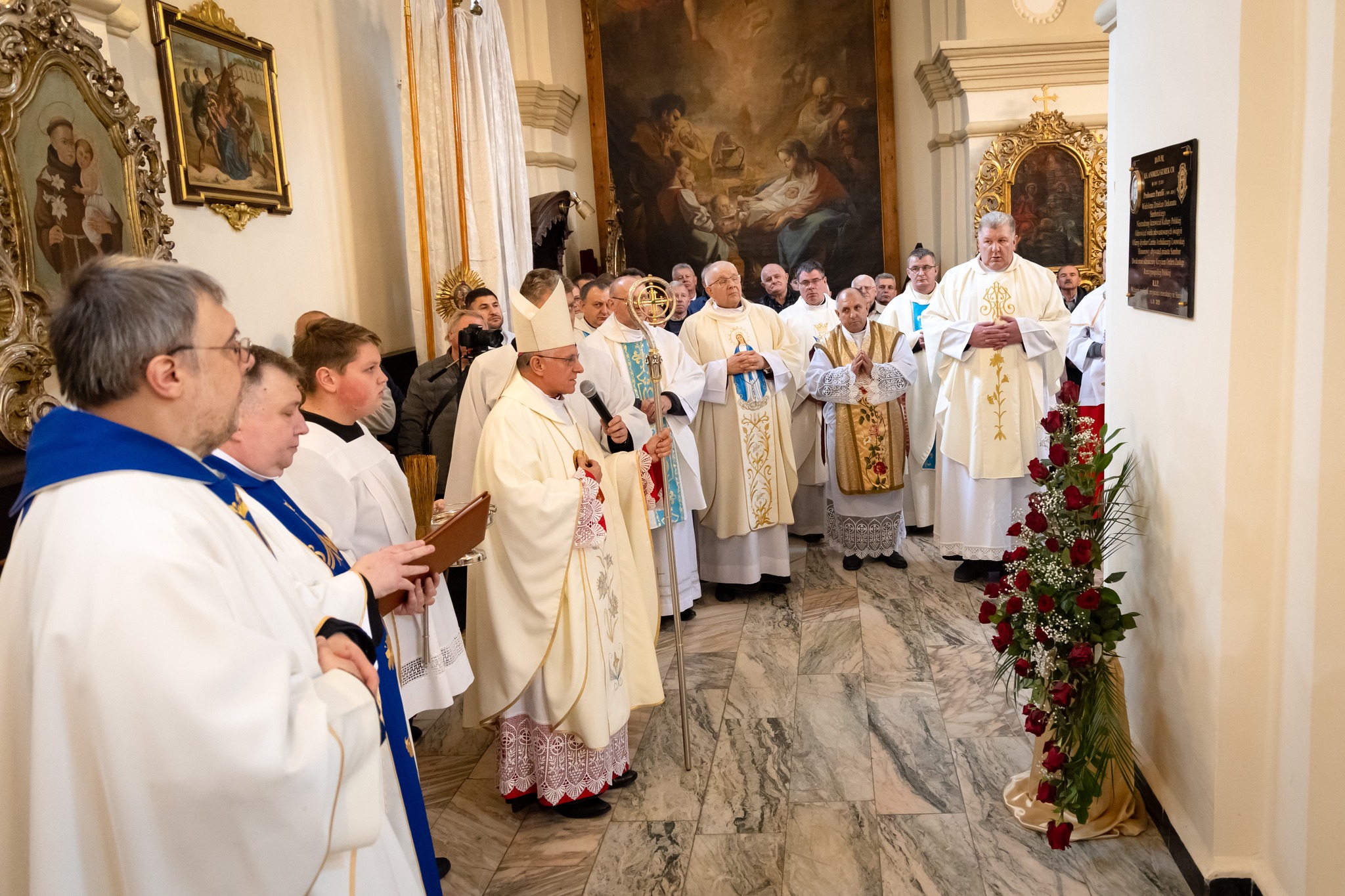 W Mszy świętej rozpoczynającej wizytację poświęcił tablicę pamiątkową śp. ks. Andrzeja Kurka CR, wieloletniego proboszcza samborskiego, odnowiciela licznych zdewastowanych świątyń i zasłużonego kapłana Archidiecezji Lwowskiej.