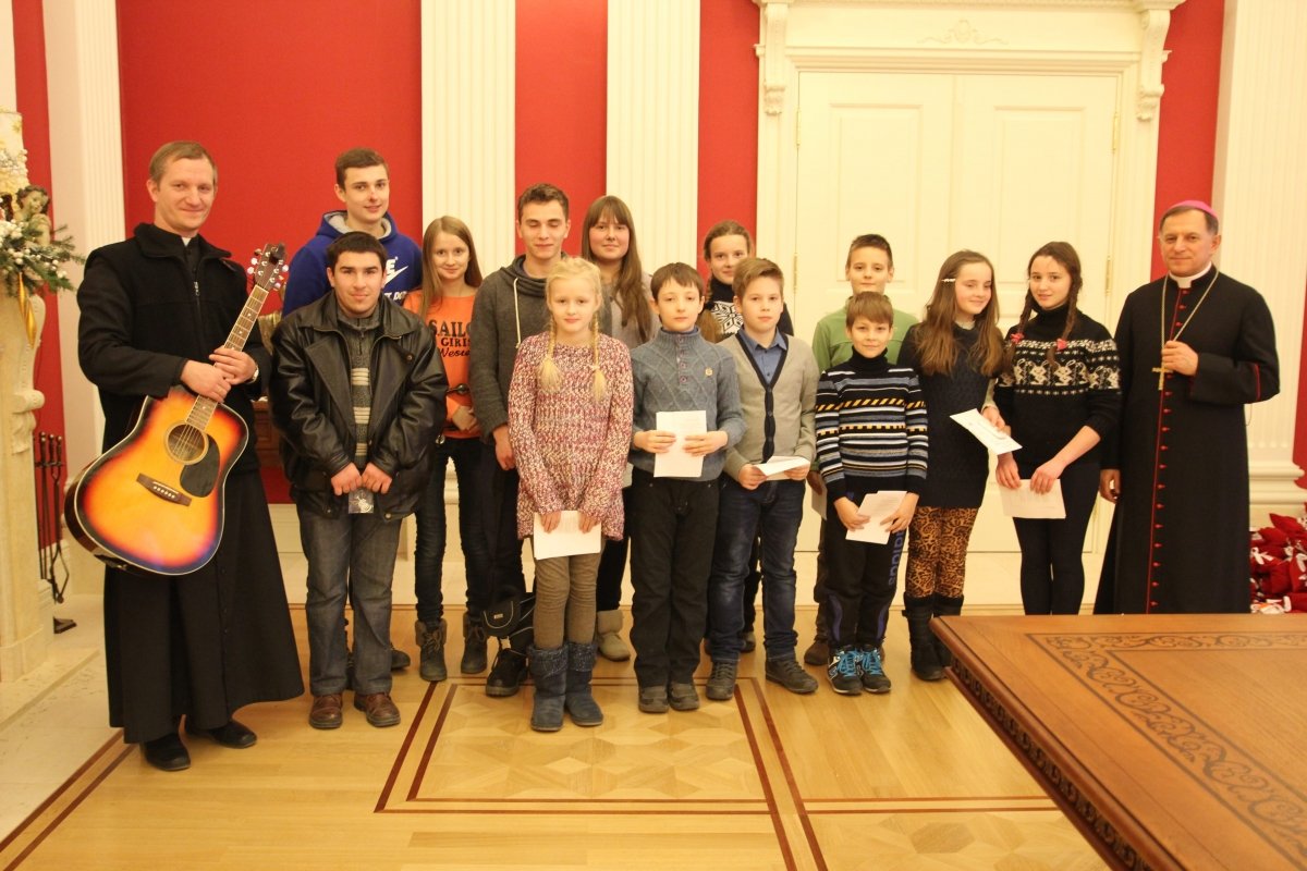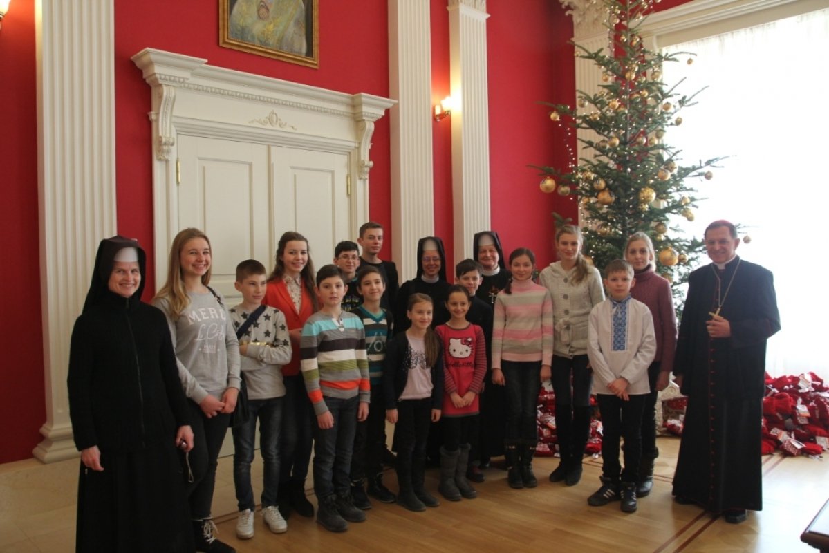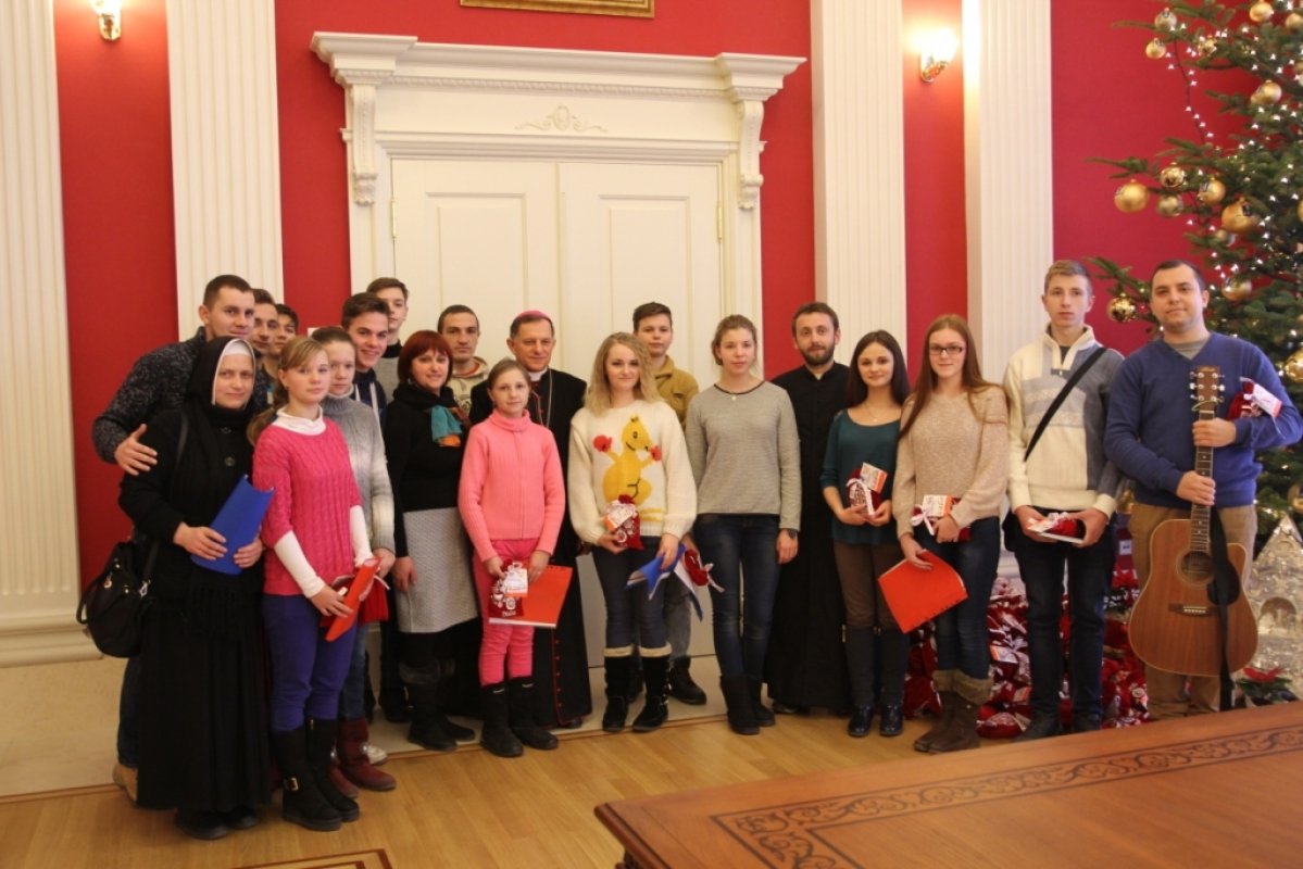 Kolędowanie dzieci i młodzieży u Arcybiskupa M. Mokrzyckiego we Lwowie