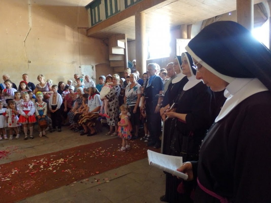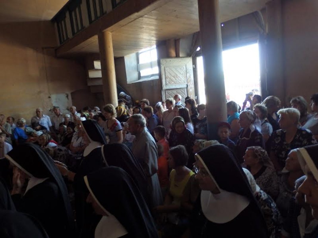 Kościół do Mszy św. przygotowała miejscowa wspólnota greckokatolicka, której proboszczem jest o. Mikołaj Sus. Na wspólną Mszę świętą przybyli mieszkańcy Dźwiniaczki wraz ze swym proboszczem. Niespodziewanym gościem uroczystości była kopia obrazu – ikony Matki Bożej Częstochowskiej. Kopie przywieźli ze sobą motocykliści, którzy w tym czasie pielgrzymowali po Ukrainie wraz z kopią obrazu z Częstochowy. Wokół stołu, który na czas Mszy św. stał się tymczasowym ołtarzem ustawiono stacje drogi krzyżowej. Droga krzyżowa została wyhaftowana przez o. Mikołaja (poświęcił na tę pracę pięć lat).