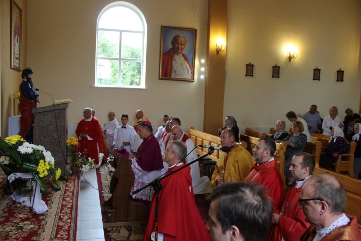 Dziękuję również wam drodzy parafianie, za odwagę i troskę jaką otaczacie tę świątynię. Modlę się o dar zbawienia dla tych, co już odeszli z tego świata, a wiele dobra uczynili dla Kościoła. Modlę się za was, którzy dzisiaj tworzycie wspólnotę parafialną. Modlę się również za tych, co zapomnieli o wierze, o Mszy św. i spowiedzi, aby wasza postawa przyprowadziły ich do Kościoła.