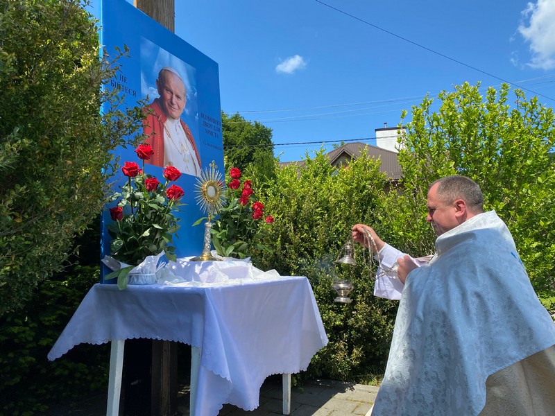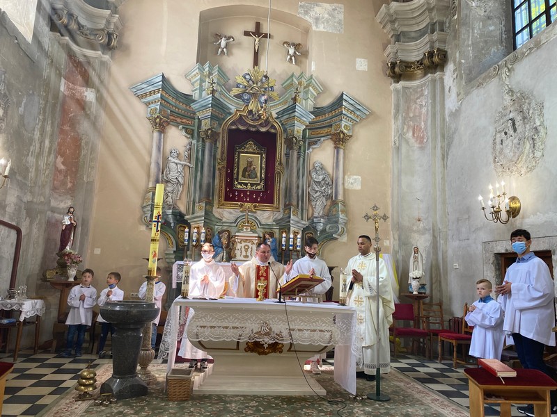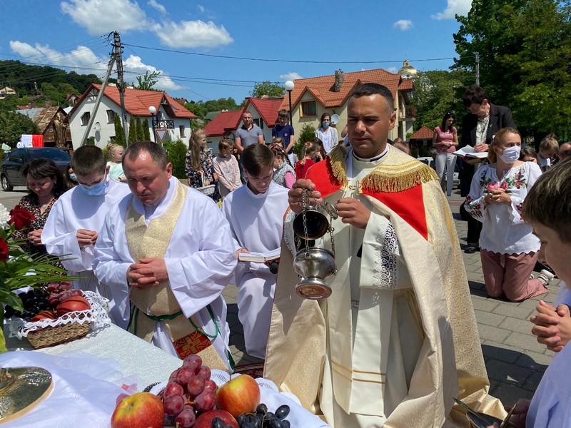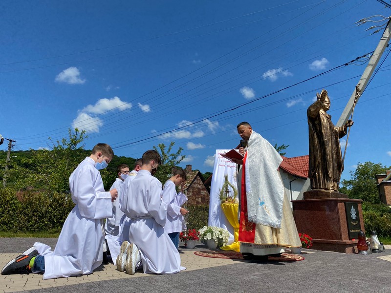 Nasza wspólnota z Sanktuarium Matki Bożej Winnickiej, uczestniczyła we Mszy św. o godz. 10.30. Przewodniczył jej ks. proboszcz Leon Salamon. W homilii, przypomniał on historię początków uroczystości Bożego Ciała, opartych na objawieniach Chrystusa, świętej Julianny z Cornillion. Pan polecił w nich, aby ustanowiono dzień, w którym Kościół obchodzić będzie uroczystości ku czci Jego Ciała i Krwi. Ksiądz proboszcz przybliżył wiernym przebieg pierwszych procesji eucharystycznych oraz wspomniał o Cudzie Eucharystycznym w Bolsenie-Orvieto (miasta we Włoszech). Wspominał także o ważnych dla katolickiej tożsamości tradycjach na naszych terenach, opartych na otwartej manifestacji wiary.